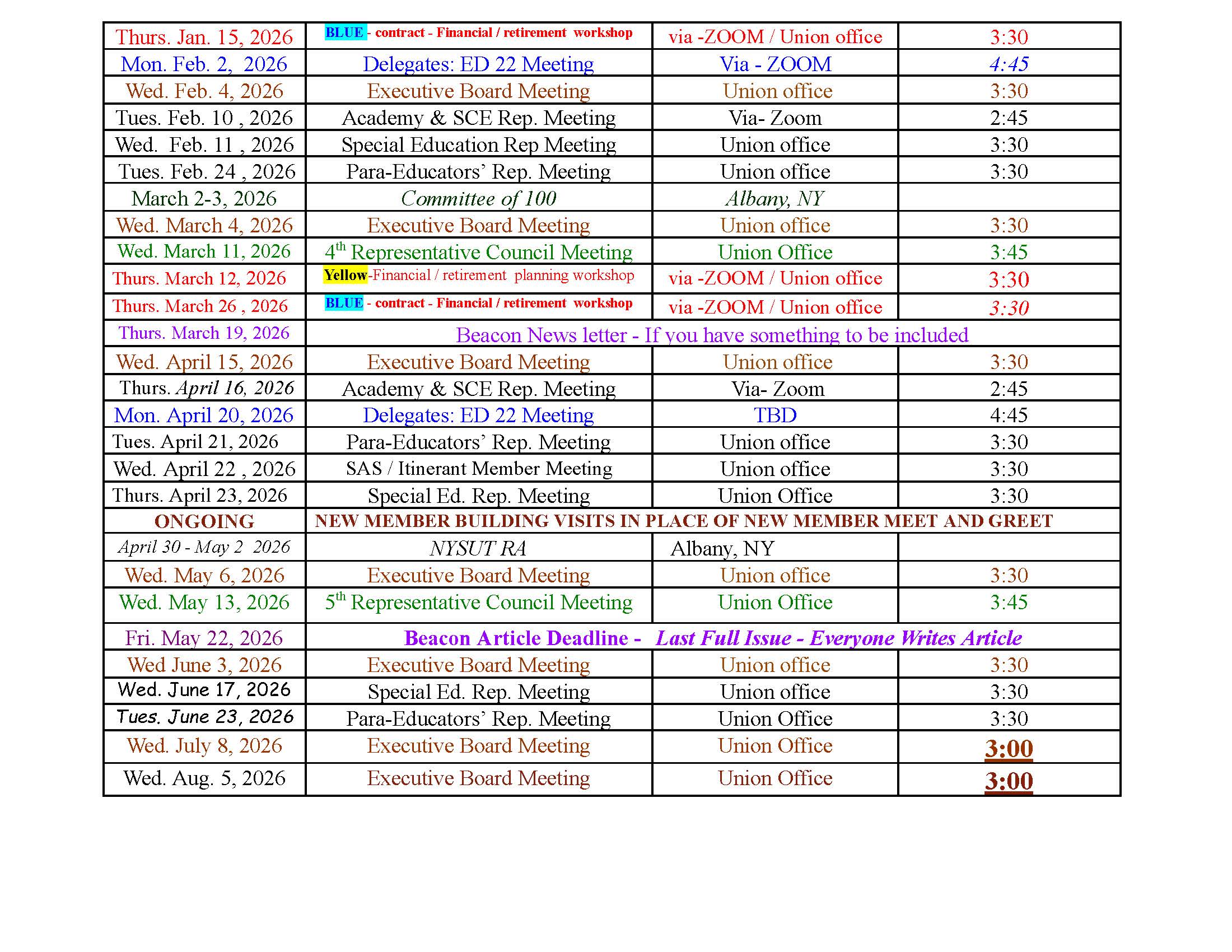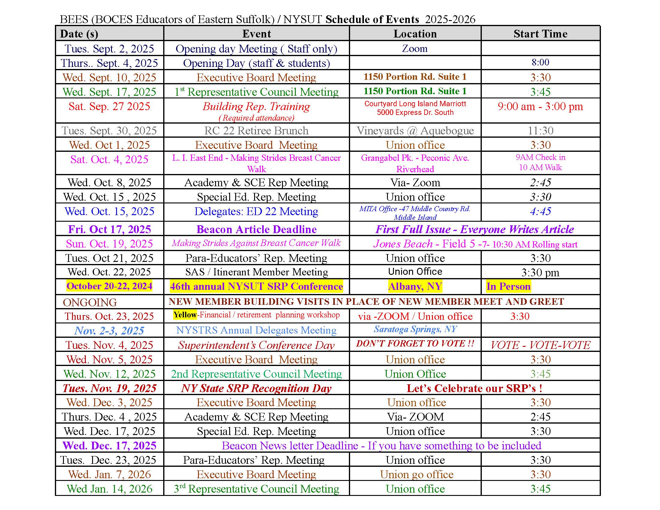 2025-2026 BEES Calendar